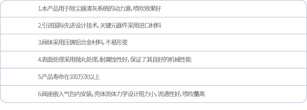 | 膜片壽命 | 噴吹100萬次以上 | |
