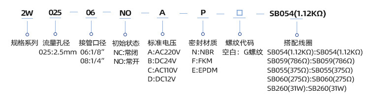 2W系列是二位二通電磁閥,斷電狀態(tài)下可根據(jù)開關(guān)狀態(tài)不同,分為常開、常閉兩種狀態(tài)。