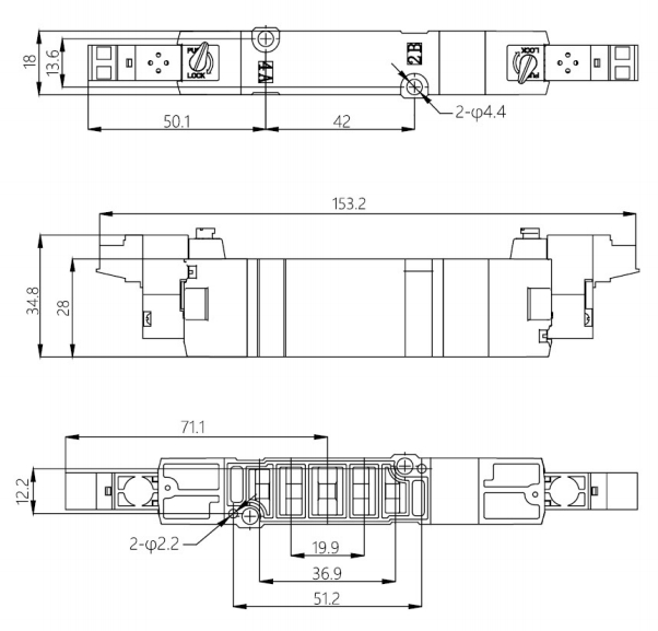7系列三位五通低功耗中封電磁閥